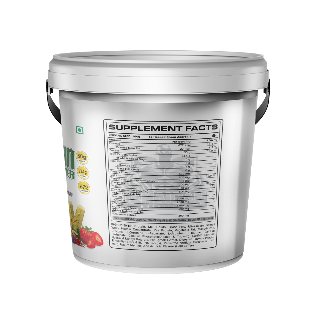 Pro Max Gainer is an advanced and effective weight gain supplement. It helps in the synthesis of new muscle gains and prevent post workout muscle loss. Added digestive enzymes helps in quick digestion of nutrients. Each serving provides 50 grams of protein and 672 calories.